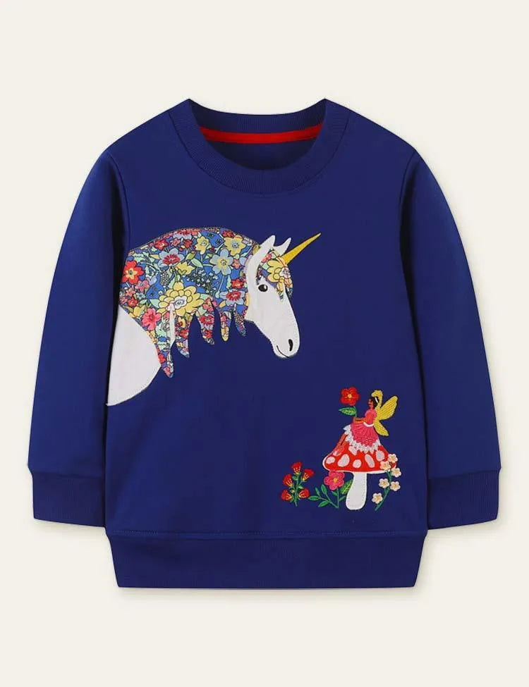 سويت شيرت مطرز بزهور على شكل حصان وتطريز على شكل فطر