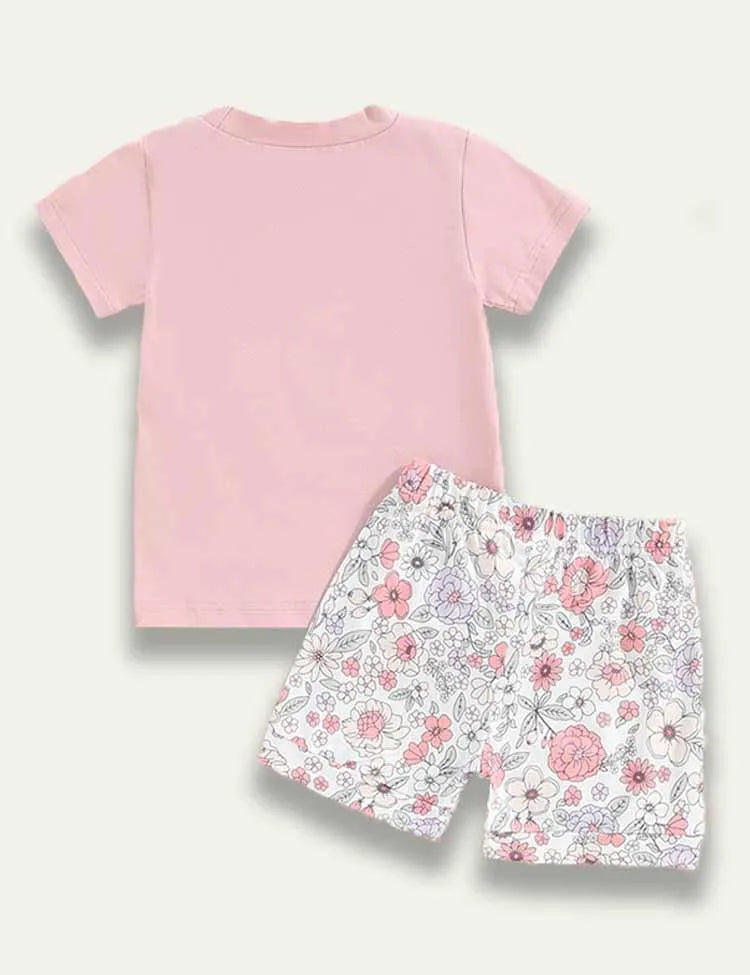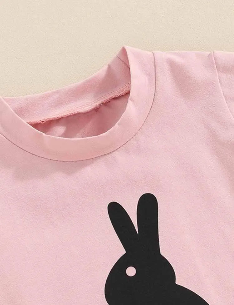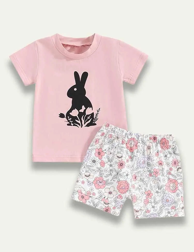 تي شيرت مطبوع عليه أرنب عيد الفصح + شورت زهري