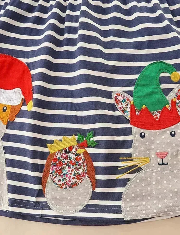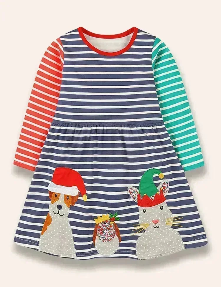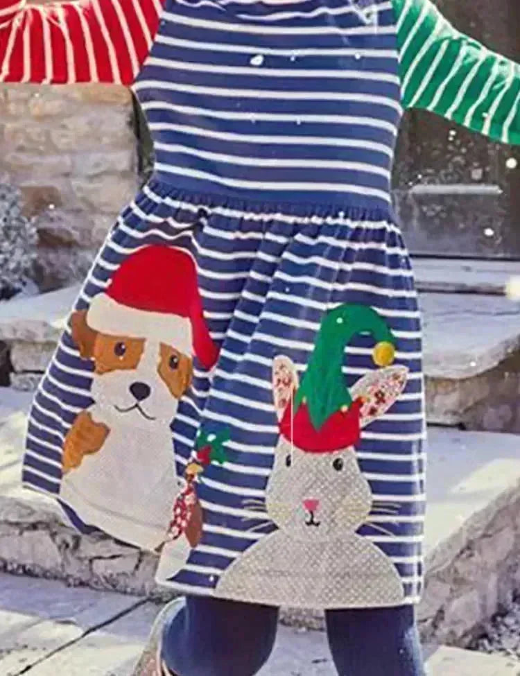 فستان كريسماس أنيمال فريند مزين بألوان متباينة
