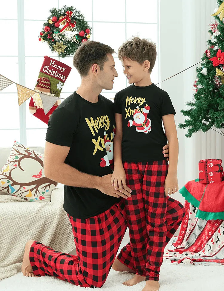 بيجامة عائلية متطابقة مطبوعة عليها سانتا كلوز سعيد
