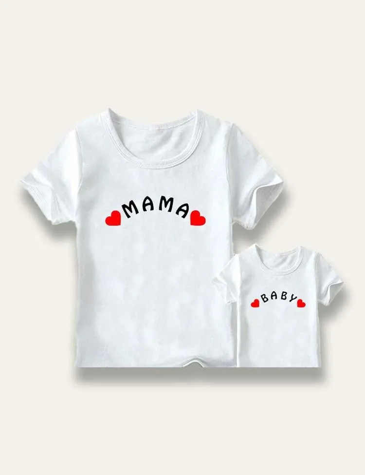 تي شيرت مطابق للعائلة مطبوع عليه حرف قلب لعيد الحب
