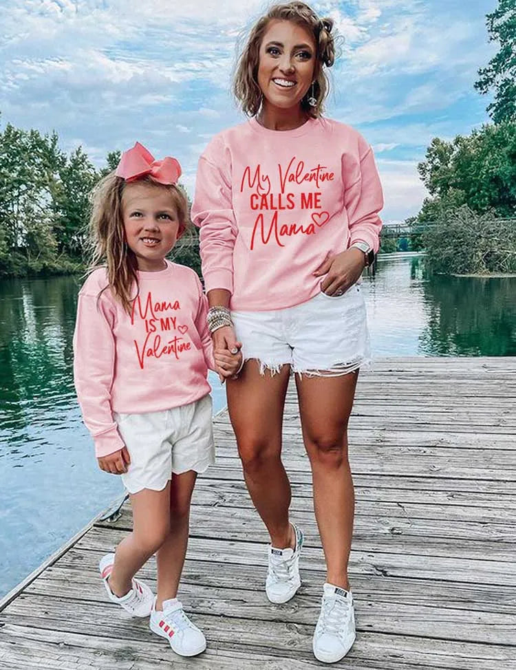 سويت شيرت بأكمام طويلة مطبوع عليه عبارة "أمي وأنا" لعيد الحب