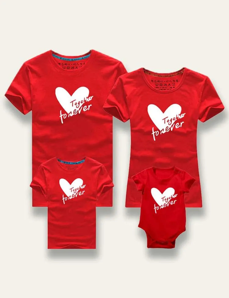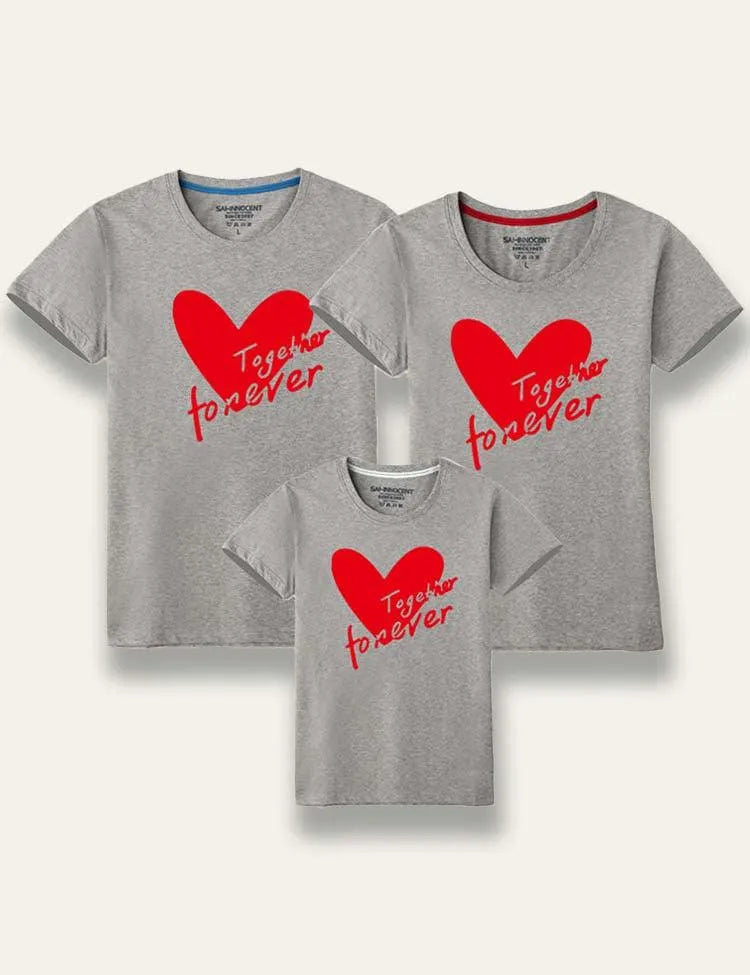 تي شيرت متطابق للعائلة مطبوع عليه عيد الحب معًا إلى الأبد