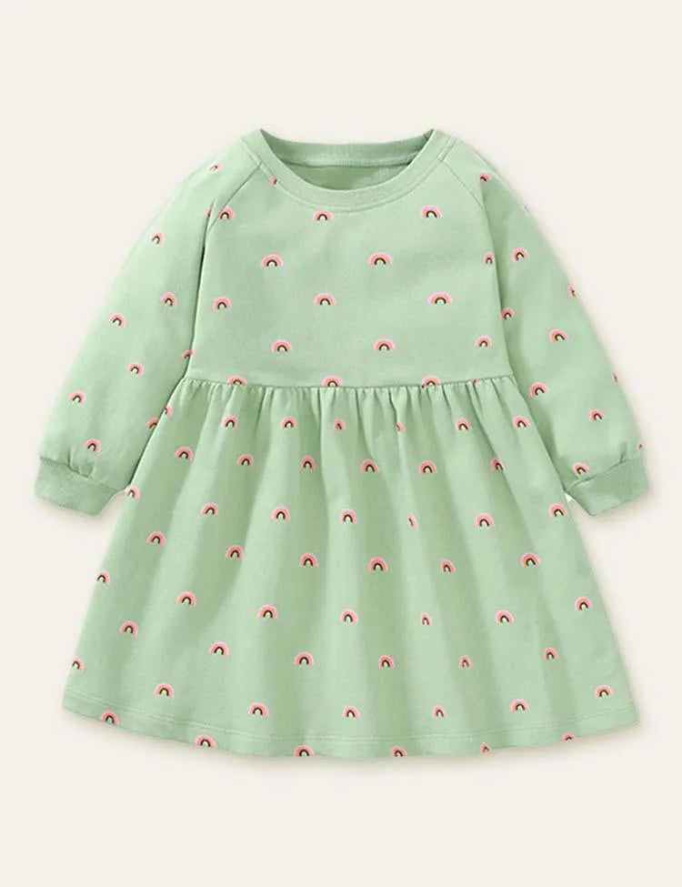فستان بأكمام طويلة وطبعات قوس قزح