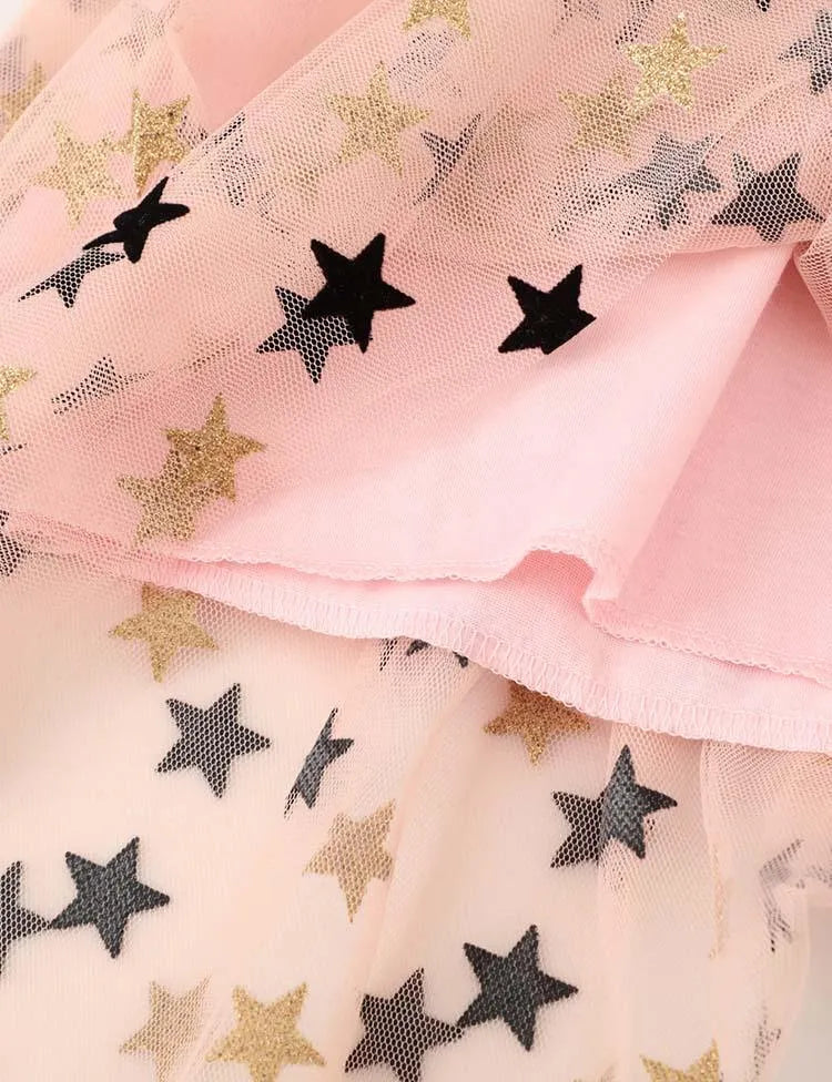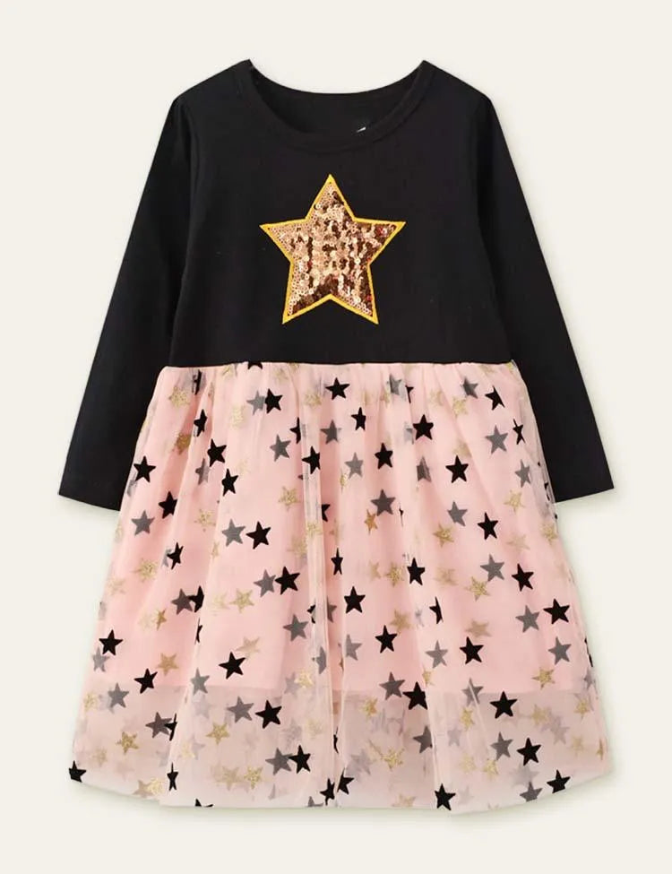 فستان شبكي بأكمام طويلة وطبعات نجوم