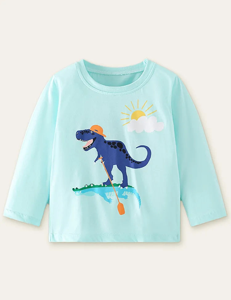 تيشيرت بأكمام طويلة وطبعات ديناصور وتمساح