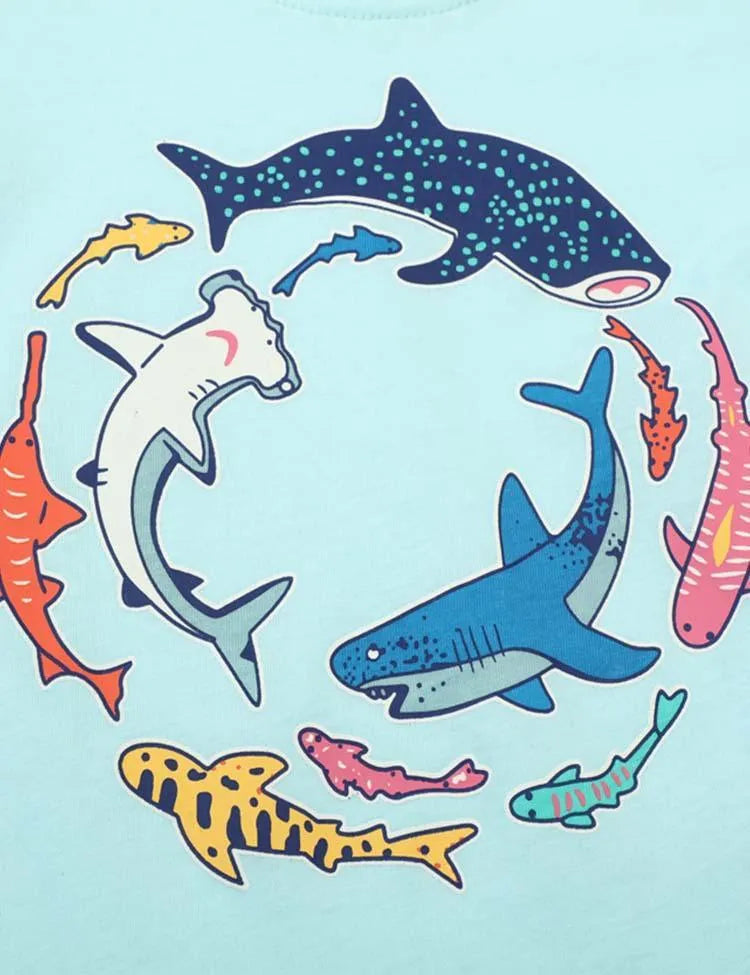 متوهجة الكرتون القرش المطبوعة تي شيرت