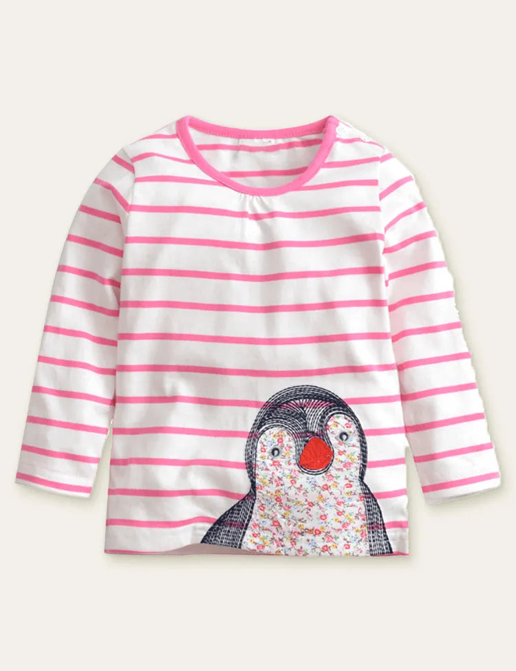 تي شيرت مطرز بأكمام طويلة على شكل بطريق