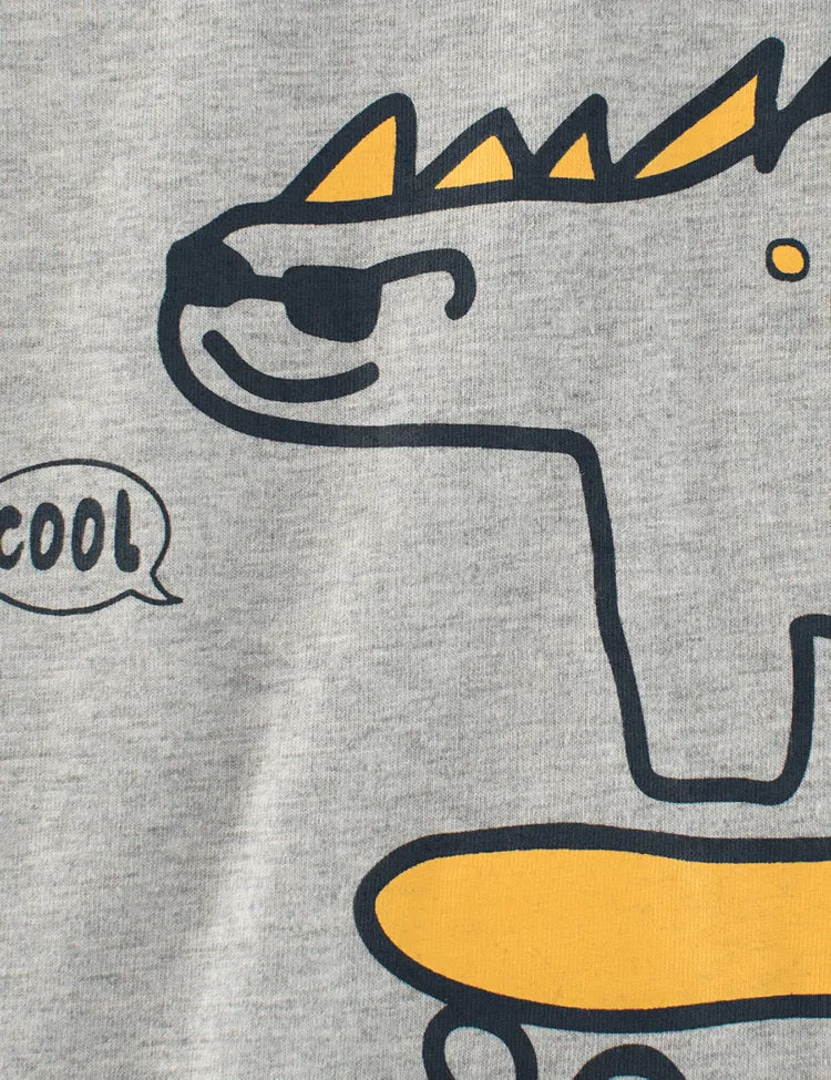 تي شيرت بأكمام طويلة مطبوع عليه ديناصور لوح التزلج