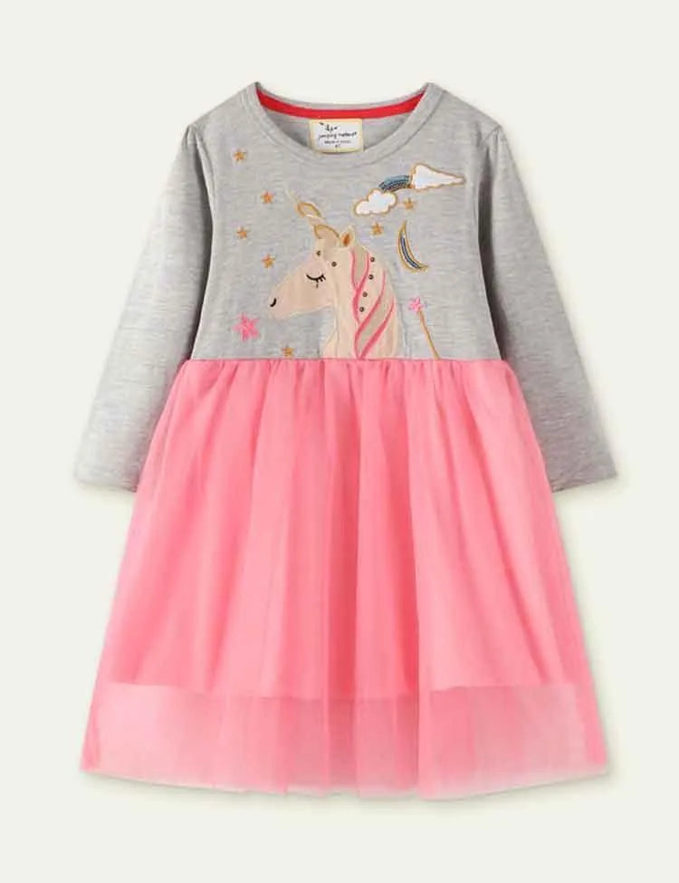 فستان مطرز بأكمام طويلة بتصميم وحيد القرن