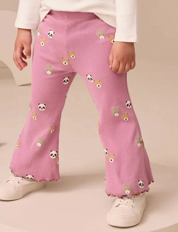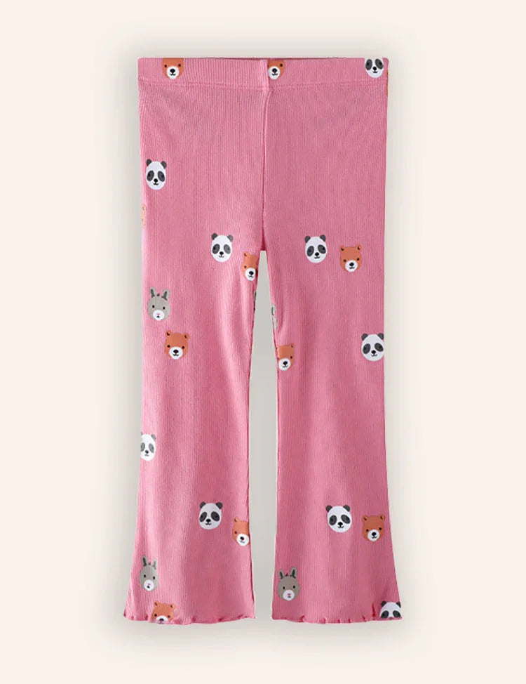 Cute Bear Printed Flared Leggings