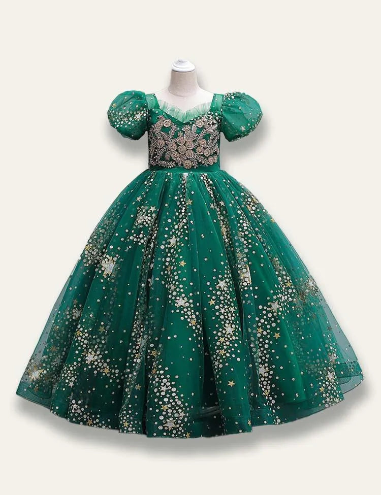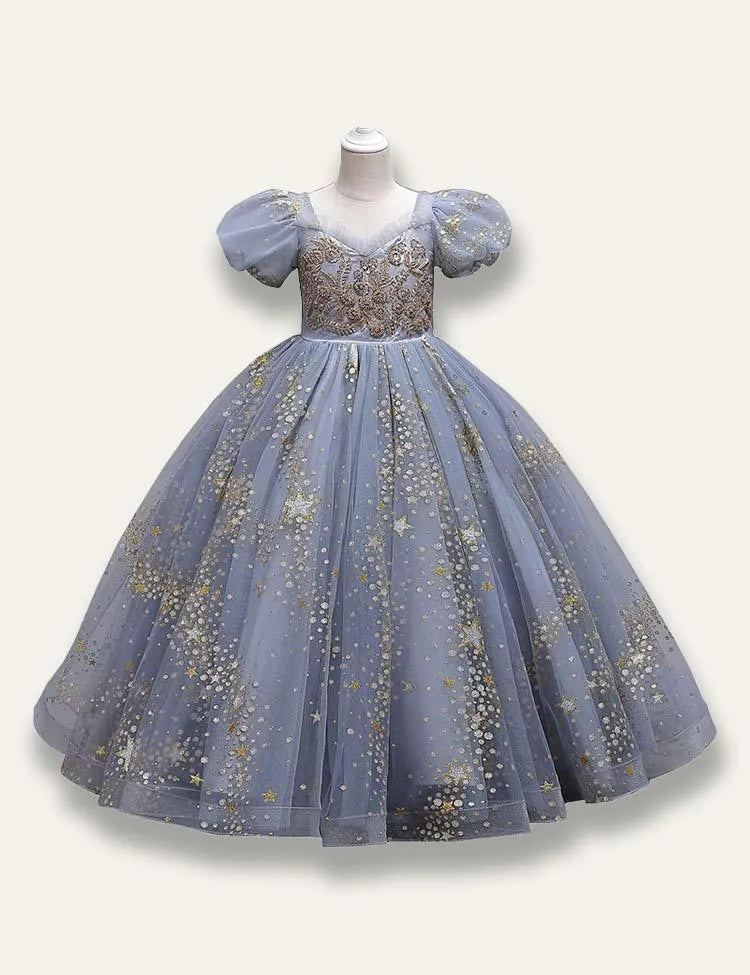 فستان الأميرة الزهرية المرصع بالنجوم من التول