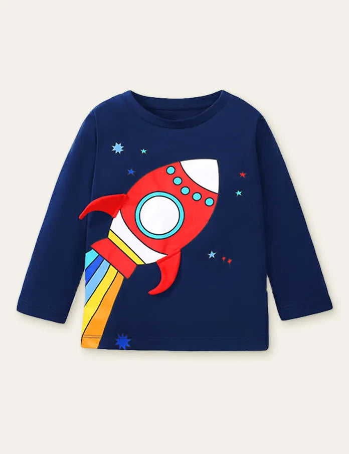 تي شيرت بأكمام طويلة مطبوع عليه صاروخ قوس قزح للجنسين