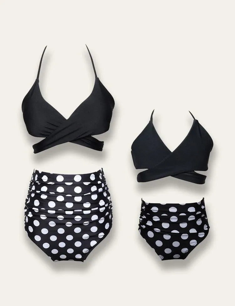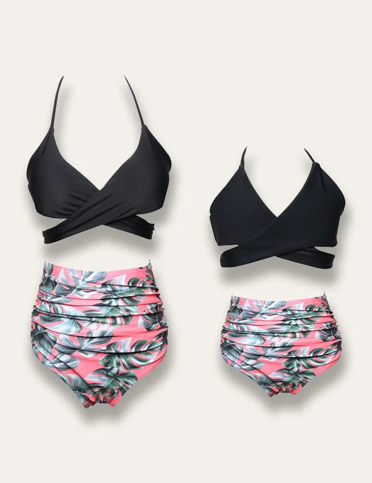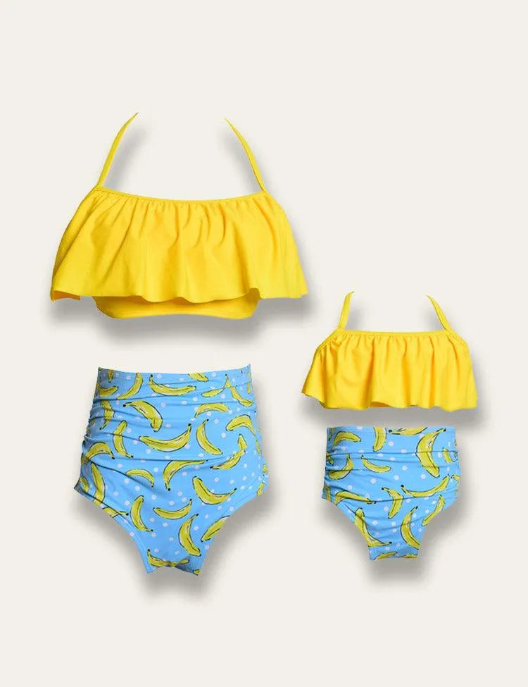 ملابس سباحة عائلية عالية الخصر مكشكشة