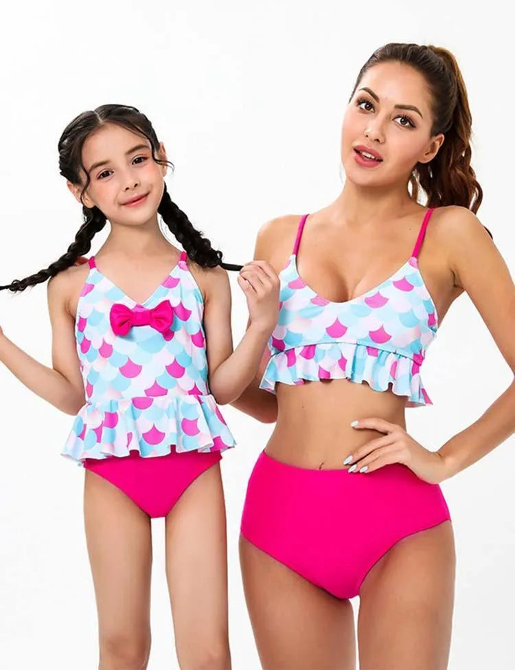 ملابس سباحة بتصميم حورية البحر ذات خصر عالٍ ومتوافقة مع العائلة