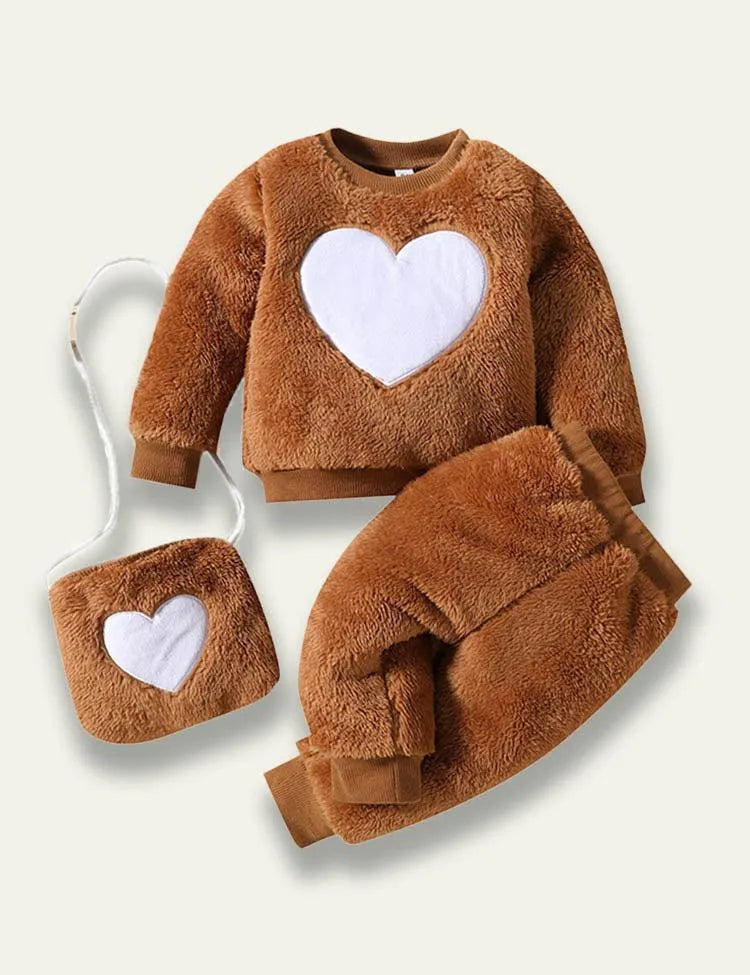 بدلة الفانيلا المطرزة على شكل قلب + حقيبة