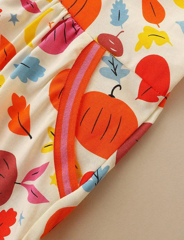 Halloween Pumpkin Leaves Printed Long Sleeve Dress