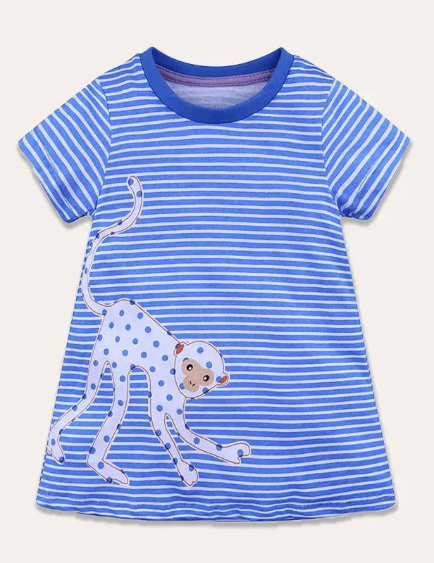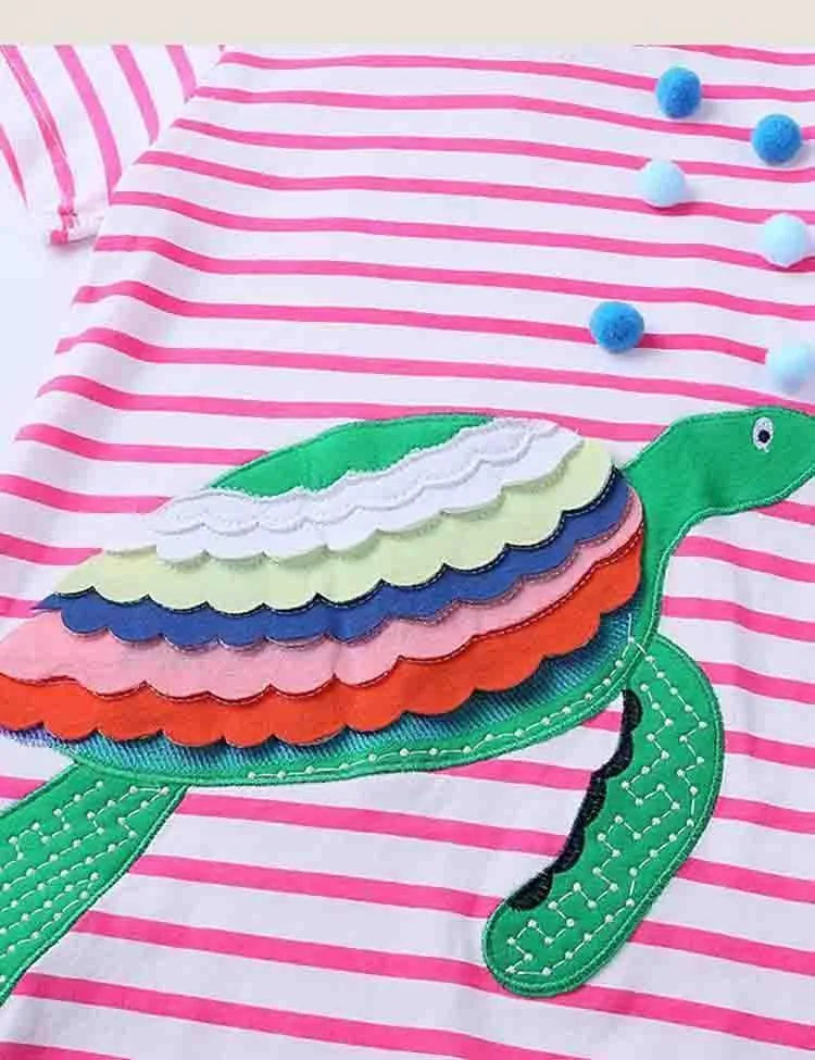 Today Only - Turtle Appliqué Short-Sleeved Striped Dress