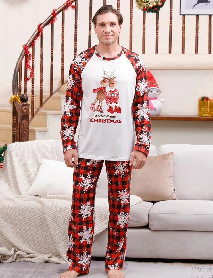 Christmas Elk Plaid Printed Family Matching Pajamas