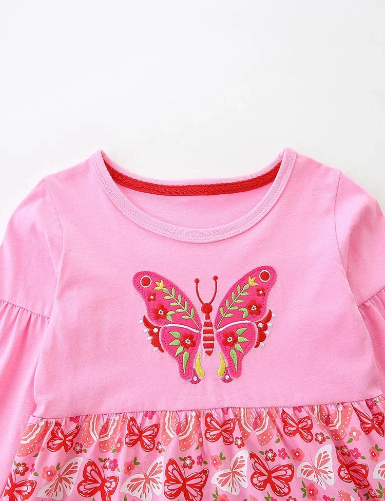 Butterfly Embroidered Long-sleeved Dress