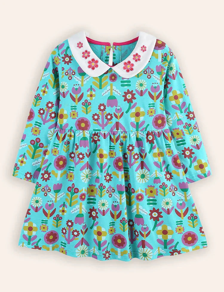 Flower Print Long-sleeved Princess Dress