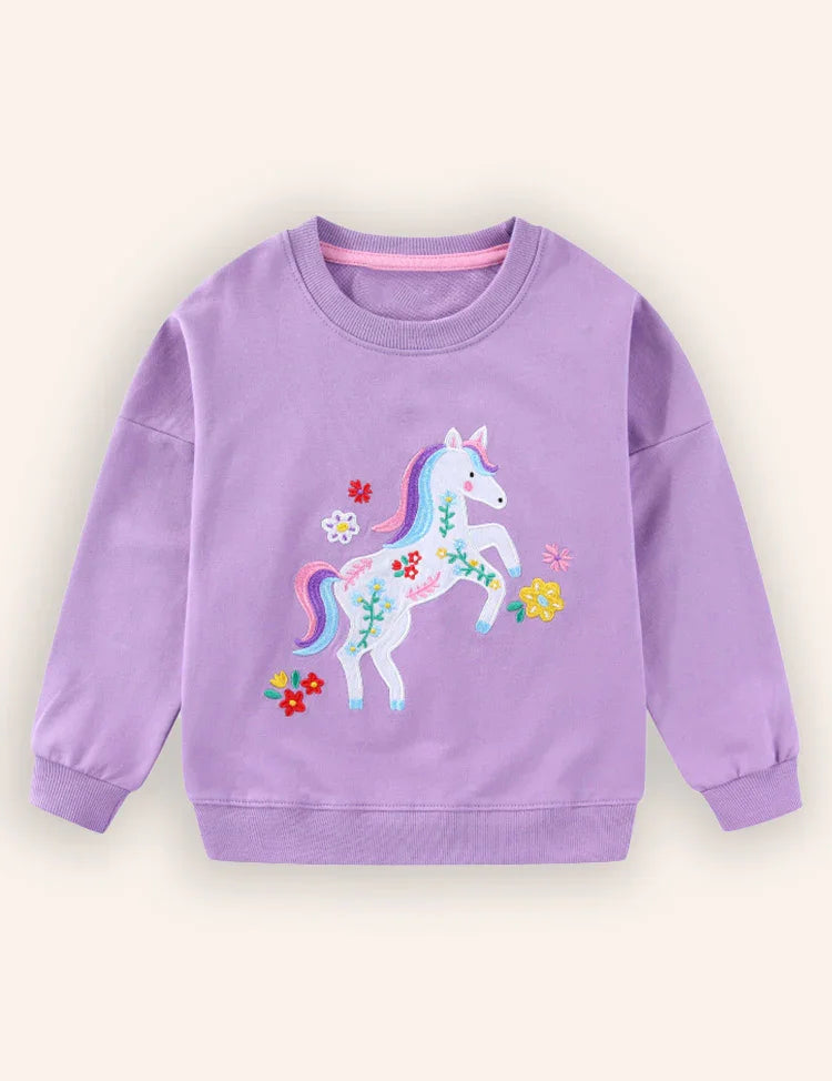 Unicorn Embroidered Long-sleeved Sweatshirt