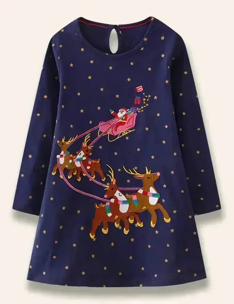 Christmas Santa Claus&Reindeer Appliqué Dress